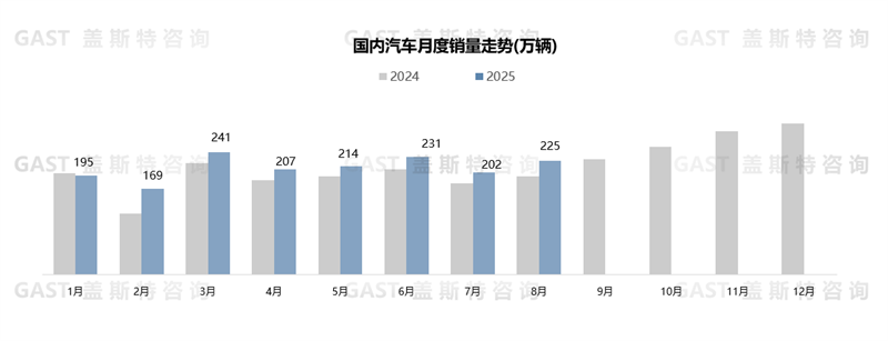 8月,國內(nèi)汽車市場銷售225萬輛,環(huán)比增長11.3%,同比增長15.6%。其中,國內(nèi)乘用車市場呈現(xiàn)穩(wěn)中有升的態(tài)勢,這主要得益于車企密集推出新車型,同時地方促消費政策持續(xù)發(fā)力,有效提振了市場需求;國內(nèi)商用車市場復(fù)蘇明顯,NEV商用車的滲透推廣,以及天然氣需求的釋放,成為其增長的關(guān)鍵因素。
