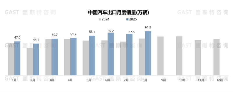 8月,汽車出口61.2萬輛,環(huán)比增長6.2%,同比增長19.6%。從動力類型看,ICE出口量同比下滑超3%,其中對俄羅斯的出口量下滑超40%;NEV滲透率已超36%。