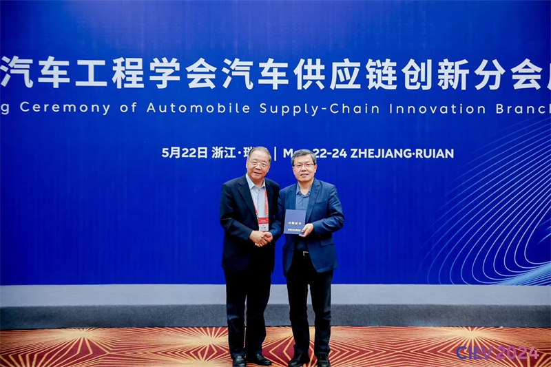 2024年5月22日,在中國汽車工程學(xué)會汽車供應(yīng)鏈創(chuàng)新分會成立大會上,付總為我頒發(fā)分會顧問證書
