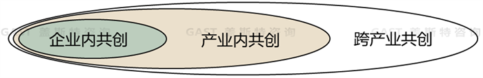 在車企具體實踐過程中,圍繞內(nèi)外部的共創(chuàng)可大致分成三個層次,如圖5所示:1、在企業(yè)內(nèi)部實現(xiàn)共創(chuàng),即內(nèi)部單一部門(如研發(fā))或跨部門(研發(fā)、生產(chǎn)、供應(yīng))基于已有技術(shù)進行再迭代和再創(chuàng)新;2、車企與產(chǎn)業(yè)鏈內(nèi)合作伙伴(如芯片廠商)圍繞新產(chǎn)品、新技術(shù)進行聯(lián)合開發(fā),實現(xiàn)深度協(xié)同;3、車企與其他產(chǎn)業(yè)主體(如ICT產(chǎn)業(yè))圍繞技術(shù)遷移應(yīng)用和新技術(shù)的突破互通有無、聯(lián)合創(chuàng)新,拓展創(chuàng)新的邊界。