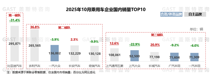 乘用車(chē)企業(yè)國(guó)內(nèi)銷(xiāo)量TOP10:自主品牌占據(jù)6席