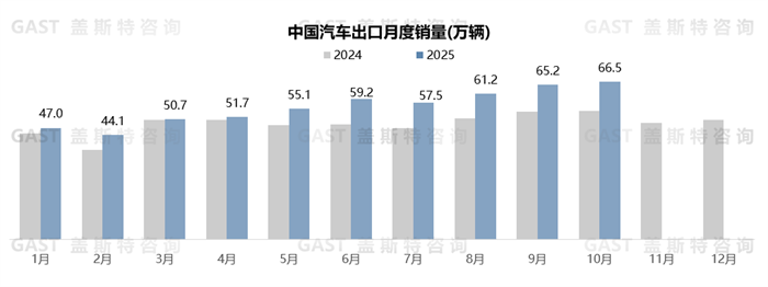10月,汽車(chē)出口66.5萬(wàn)輛,環(huán)比增長(zhǎng)2.1%,同比增長(zhǎng)22.9%。從動(dòng)力類(lèi)型看,ICE出口量同比下降0.9%;NEV出口仍維持同比高增長(zhǎng)。