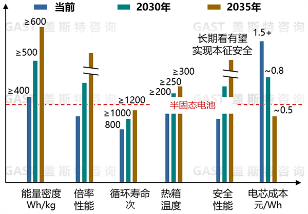 圖3半固態(tài)電池性能/價(jià)格現(xiàn)狀及預(yù)判