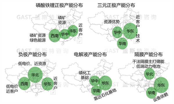 圖11鋰電池四大主材產(chǎn)能分布情況