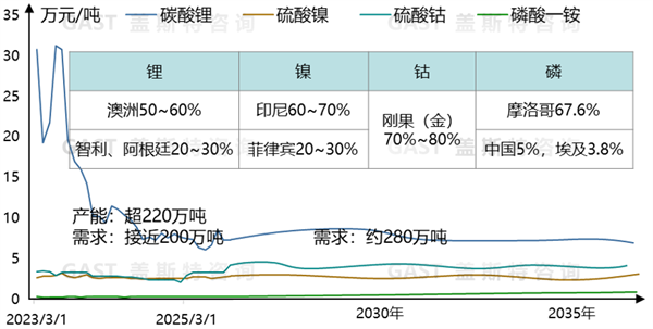 鋰資源呈現(xiàn)供需兩旺格局,受供需釋放周期的差異性及國際形勢影響,在總體平衡下會(huì)出現(xiàn)短期的動(dòng)態(tài)波動(dòng),如2025年在儲(chǔ)能爆發(fā)及新能源車高速發(fā)展背景下,鋰資源由過剩轉(zhuǎn)為緊平衡,進(jìn)而拉動(dòng)碳酸鋰價(jià)格向上波動(dòng)。